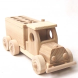 Štýlový drevený stojanček na ceruzky v tvare nákladiaka z kvalitného bukového dreva s prírodným vzhľadom. Má otočné kolieska, zaoblené hrany pre bezpečnú hru aj používanie a pojme až 8 ks ceruziek a pier.