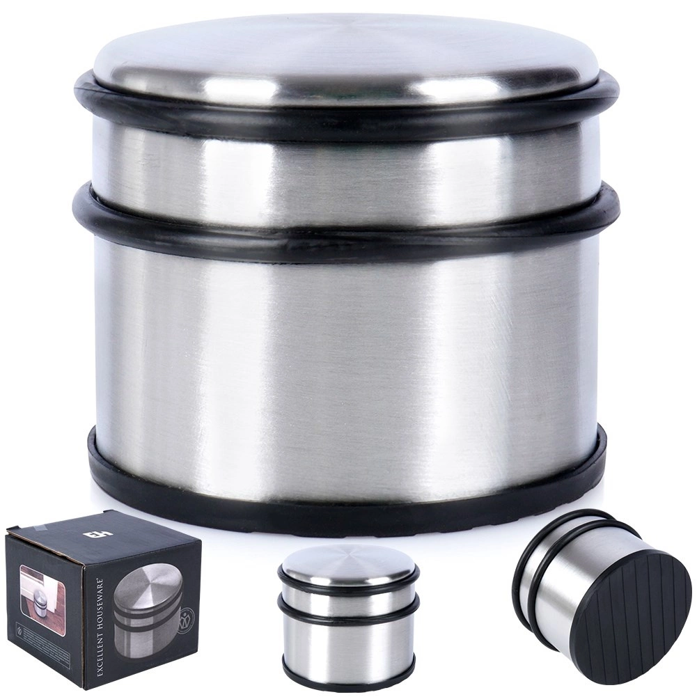 Praktický a stabilný doraz na dvere z nehrdzavejúcej ocele s hmotnosťou 1,1 kg spoľahlivo zabráni nechcenému zatvoreniu a chráni steny aj nábytok. Vďaka gumovým prvkom po obvode aj na spodnej strane šetrne tlmí nárazy a nešmýka sa po podlahe. Bez vŕtania a lepenia, stačí ho postaviť na miesto. Ideálny do domu, kancelárie aj salónu.