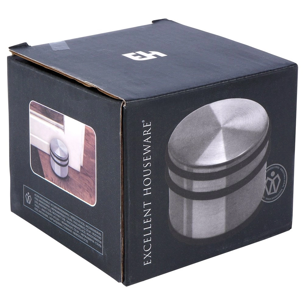 Telo z brúsennej nehrdzavejúcej ocele dodáva dorazu odolnosť, dlhú životnosť a elegantný vzhľad do moderných interiérov.