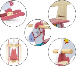 Koník je osadený pevnými rukoväťami, opierkami na nohy a má profilované lyžiny, ktoré zabezpečujú plynulé hojdanie bez nechceného prevrátenia. Moderný pastelový dizajn sa ľahko hodí do každého detského izby a vďaka darčekovému baleniu poteší aj ako krásny darček.