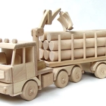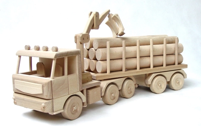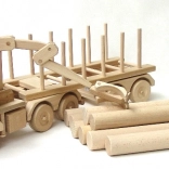 Veľký drevený tahač s kládami s dĺžkou 70 cm poteší malých vodičov aj milovníkov kvalitných hračiek. Ponúka pohyblivé rameno, odnímateľné klády a otočný príves pre realistickú hru. Je vyrobený z kvalitného bukového dreva so zaoblenými hranami a precíznym spracovaním, takže dlho vydrží a je bezpečný pre deti od 3 rokov.