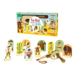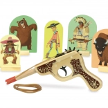 Postavte terče, natiahnite gumičku a vyzvite rodinu alebo kamarátov na prestrelku v obývačke. Kvalitné drevené prevedenie zaisťuje odolnosť a dlhú životnosť hračky, zatiaľ čo atraktívny westernový dizajn nadchne malých pištolníkov.