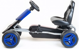 Praktický reťazový pohon s funkciou vpred/vzad umožňuje jednoduché ovládanie, zatiaľ čo nastaviteľné sedadlo (2 pozície) rastie spolu s dieťaťom. Motokára spĺňa európske bezpečnostné normy, má športový volant, plastové kryty a chrániče pre vyššiu bezpečnosť aj odolnosť.