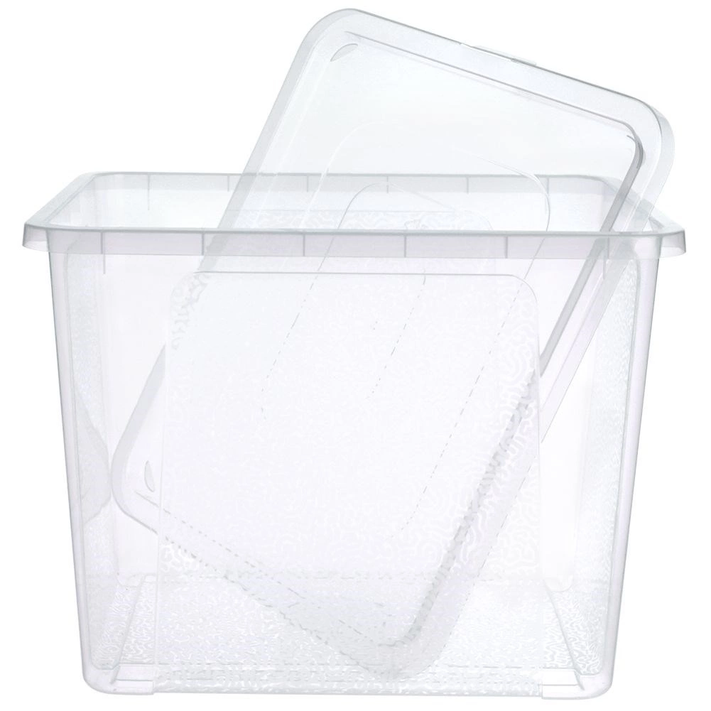 Multifunkčný úložný box s vekom je nepostrádateľný na organizáciu a úsporu miesta v policiach, skrinkách aj regáloch. Priehľadné prevedenie umožňuje rýchlu identifikáciu obsahu, zatiaľ čo ľahká a pritom pevná konštrukcia zaistí dlhú životnosť a pohodlnú manipuláciu. Jemné zdobenie stien dodáva boxu štýlový vzhľad.