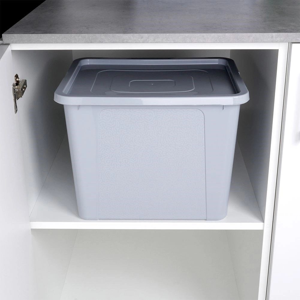 Praktický úložný box s vekom s objemom 30 l pomôže udržať poriadok v domácnosti, kancelárii aj dielni. Je ľahký, ale odolný, má zaoblené rohy pre bezpečné používanie a zacvakávacie veko chráni obsah pred prachom a vlhkosťou. Vďaka univerzálnemu prevedeniu v svetlosivej farbe sa hodí do skríň, políc aj regálov.
