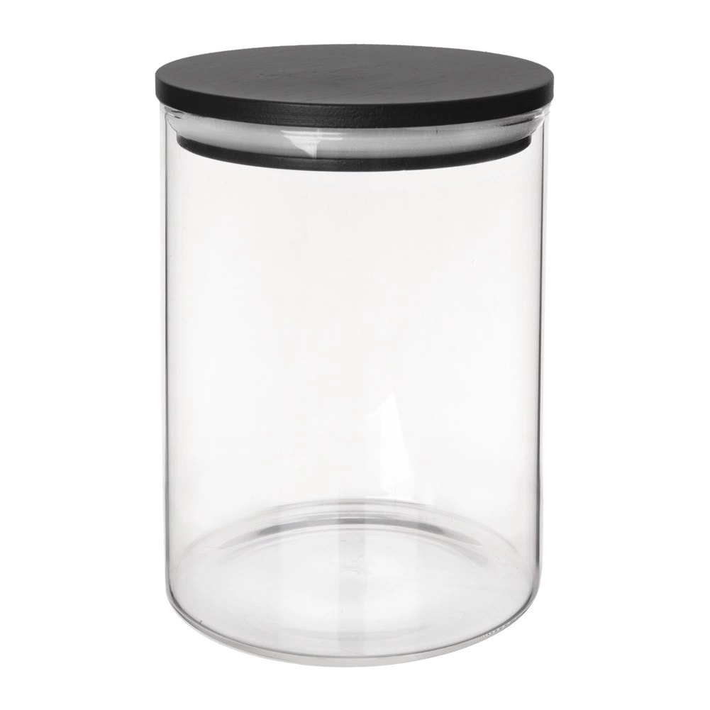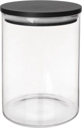 Dóza je vyrobená z borosilikátového skla, ktoré je odolné voči teplotným zmenám a bežnému používaniu v kuchyni. Čierne viečko s elegantným vzhľadom skvelo zapadne do modernej domácnosti a udrží vašu špajzu prehľadnú.