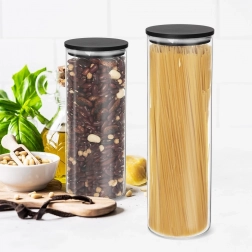Vďaka priehľadnému telu máte vždy perfektný prehľad o obsahu aj množstve. Minimalistický dizajn s čiernym vekom skvelo ladí s modernou kuchyňou a podporuje prehľadné skladovanie suchých potravín – od cestovín a ryže po sušené ovocie či huby.