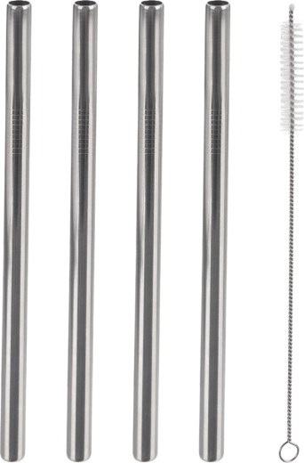 Užite si obľúbené nápoje udržateľne. Nerezové slamky v elegantnej striebornej farbe nemenia chuť nápojov, výborne vyzerajú v skle a hodia sa na vodu, smoothie, koktaily, limonádu, kávu aj ľadový čaj. Súčasťou je úzky čistiaci kefka pre perfektnú hygienu.