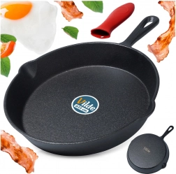 Tip na údržbu: Po každom použití umyte, osušte dosucha a ľahko naolejujte. Pravidelné olejovanie chráni liatinu pred koróziou a zaručuje dlhú životnosť. Panvica nemá žiadny nepriľnavý povlak.