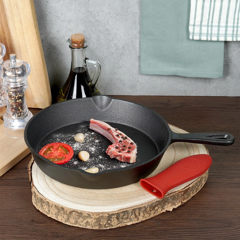 Súčasťou je červený silikónový návlek na bezpečnú manipuláciu s horúcou rukoväťou. Panvica je vhodná na všetky typy sporákov vrátane indukcie, do rúry, na gril aj priamo nad otvorený oheň – ideálna do kuchyne, na kempovanie aj záhradné grilovanie.