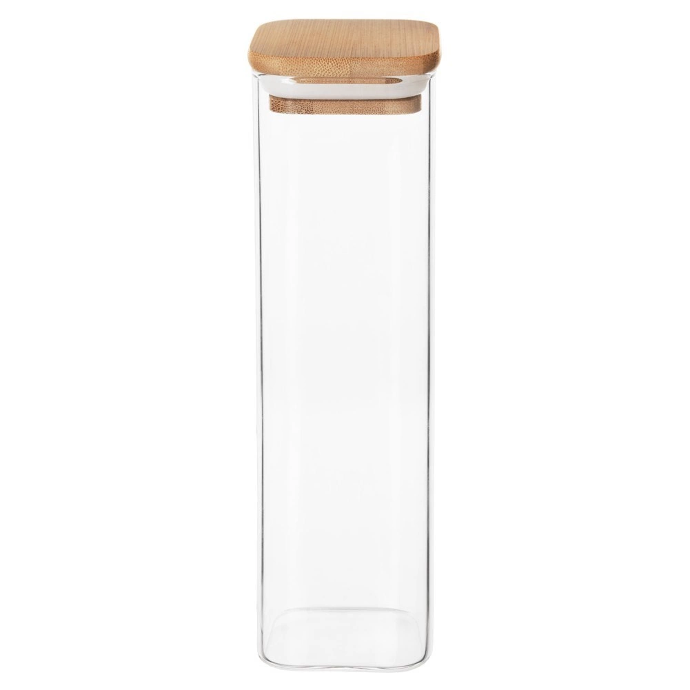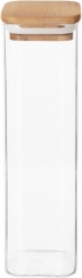 Udržiavajte poriadok a čerstvosť potravín vďaka praktickej sklenenej dóze s bambusovým viečkom a silikónovým tesnením. Číre borosilikátové sklo je odolné voči teplotným zmenám a umožní vám okamžitú kontrolu obsahu. Minimalistický vzhľad a prírodný bambus z nej robia elegantný doplnok kuchyne.