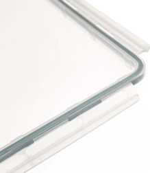 Veko so štyrmi klipmi a kvalitnou silikónovou vložkou bráni úniku tekutín a udržiava potraviny dlhšie čerstvé.