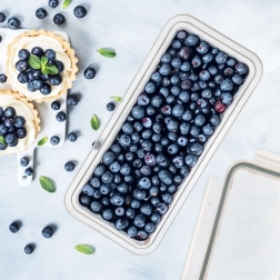 Nízky profil a ploché veko šetria priestor v chladničke a umožňujú bezpečné stohovanie viacerých krabičiek.
