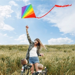 Tento dúhový šarkan z kvalitného polyesteru nadchne deti aj dospelých. Vďaka ľahkému prevedeniu sa ľahko vznáša a dlhý chvost mu dodáva výbornú stabilitu vo vetre. Vhodný na pláž, záhradu aj široké lúky.