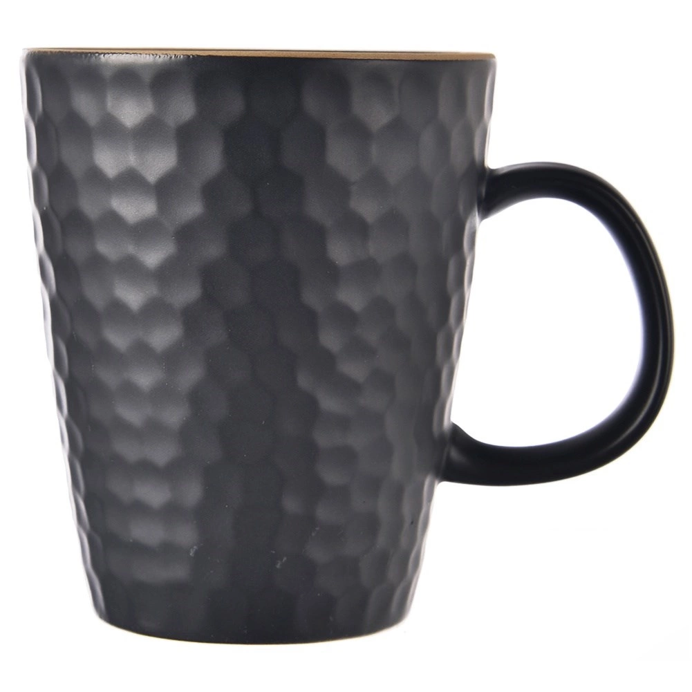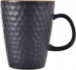 Objavte praktický a nadčasový hrnček z kolekcie TEA TIME, ktorý skvele doplní vašu domácu výbavu. Čierna matná glazúra s plastickým vzorom plástov dodáva hrnčeku moderný vzhľad a zároveň zlepšuje úchop. Vďaka objemu 420 ml si naplno vychutnáte svoju obľúbenú kávu, čaj alebo horúce kakao.