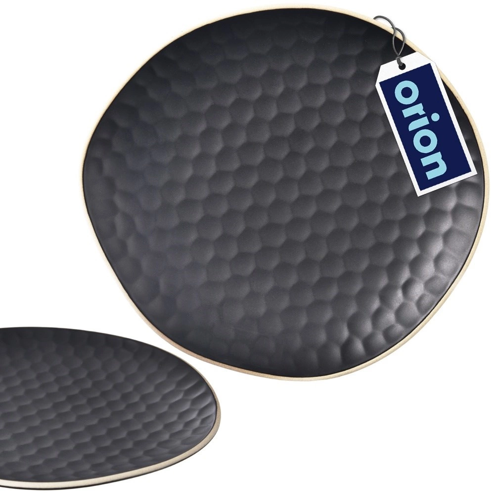 Matná, jemne kladivkovaná/„plástová“ textúra dodáva tanieru moderný vzhľad a lepší úchop. Kontrastný svetlý lem zvýrazní servírované pokrmy.