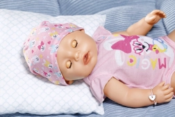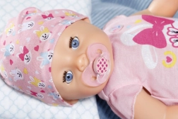 Otočte cumlíkom v pusinke a bábike sa okamžite otvoria alebo zatvoria oči – funguje v akejkoľvek polohe tela. Bez cumlíka sa pri položení na chrbát oči samy zatvoria.