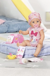 Bábika pije vodu, je kašu, ciká do plienky aj na nočník, vie kakať a roní skutočné slzy. Skvelá na nácvik starostlivosti a každodenných rituálov.