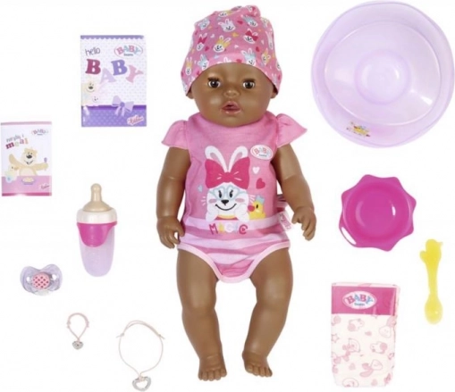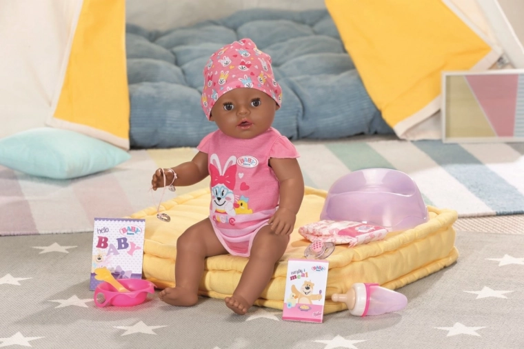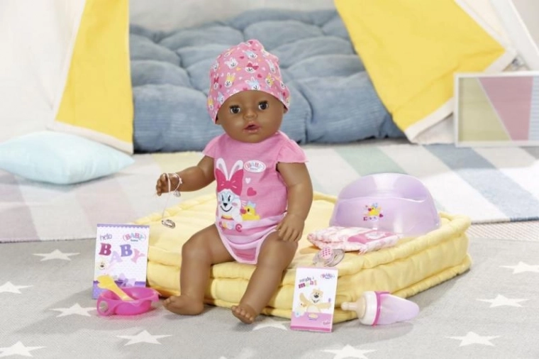 BABY Born zo všetkého najradšej spí, je a kúpe sa. Veľmi rada pije vodu zo svojej fľaštičky. Potom sa vymočí do plienky alebo na nočník a roní skutočné bábätkovské slzy. Rovnako ako môže BABY Born piť vodu, môže jesť aj kašu. Dokonca vie aj kakat. Ruky, nohy a hlava bábiky sú ľahko pohyblivé, takže prezliekanie oblečenia je hračka a skvelá zábava. Telíčko bábiky z materiálu „Soft Touch“ je krásne mäkké a príjemné.