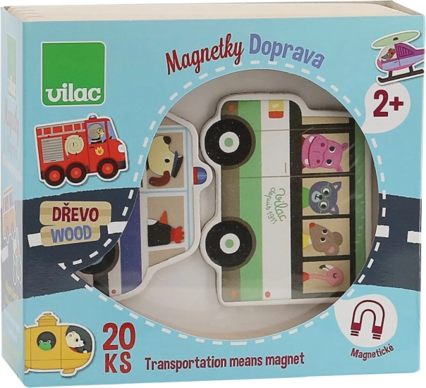 Súprava drevených magnetiek s motívmi dopravných prostriedkov, ideálna pre dekoráciu detskej izby alebo chladničky. Vyrobené ekologicky a šetrne k životnému prostrediu.