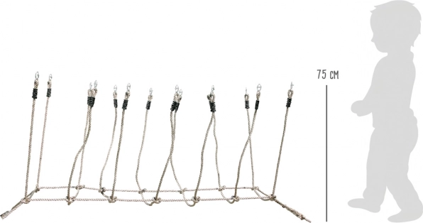 Lanový most SMALL FOOT je skvelým doplnkom do záhrady alebo na detské ihrisko. Deťom poskytuje zábavný a bezpečný spôsob, ako trénovať rovnováhu, silu úchopu a koordinačné zručnosti. Montáž je vďaka kovovým prieťahom otázkou chvíľky – most jednoducho napnete medzi dva pevné body, ideálne stromy.