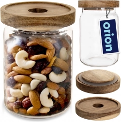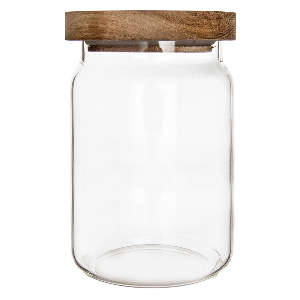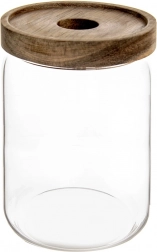 Praktická sklenená dóza s objemom 970 ml na prehľadné a hygienické skladovanie suchých potravín. Je vyrobená z odolného borosilikátového skla a má drevené viečko so silikónovým tesnením pre spoľahlivú vzduchotesnosť a dlhšiu čerstvosť aj arómu surovín. Vhodná do umývačky (bez viečka) a ideálna na kávu, orechy, cestoviny, müsli či sušené ovocie.