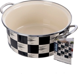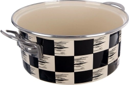 Tento praktický hrniec zo smaltovanej ocele vyniká univerzálnym použitím a nadčasovým vzhľadom. Šachovnicový dekor v čierno‑béžovej kombinácii skvelo zapadne do modernej aj vidieckej kuchyne. Vnútorný béžový smalt je hladký, ľahko sa čistí a je šetrný k potravinám.