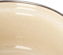Oceľ so smaltovaným povrchom je hygienická, ľahko sa čistí a je bezpečná aj pre alergikov. Nerezový okraj zvyšuje odolnosť proti oťukom.
