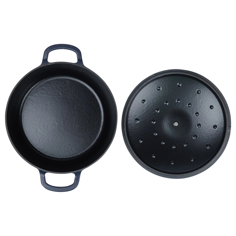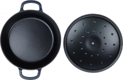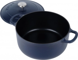 Univerzálny liatinový hrniec s pokrievkou s objemom 5,2 l na každodenné varenie, dusenie aj pečenie. Vďaka rovnomernému rozvodu tepla, dlhej akumulácii tepla a odolnosti do 250 °C zvládne polievky, guláše aj pečienky na sporáku, v rúre aj na grile. Vnútorný smaltovaný povrch uľahčuje varenie aj jednoduché čistenie, robustné nerezové madlo na veku a široké bočné úchyty zaisťujú bezpečnú manipuláciu.