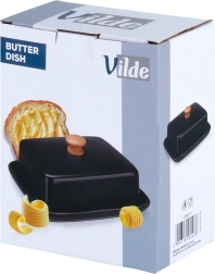 Keramická čierna maselnička s dreveným gombíkom Vilde