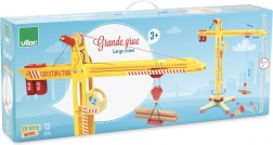 Veľký drevený žeriav VILAC nadchne malých staviteľov realistickým spracovaním – od kabíny cez protizávažie až po funkčný vozík. Vďaka širokej podstave je žeriav mimoriadne stabilný a bezpečný. Deti môžu celým žeriavom voľne otáčať, zdvíhať aj posúvať bremená pomocou dvoch plynulých kľučiek, čo podporuje motoriku, predstavivosť a hry na roly.