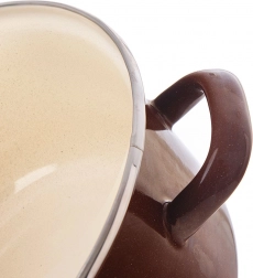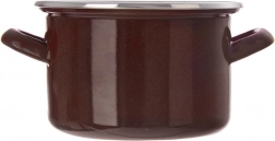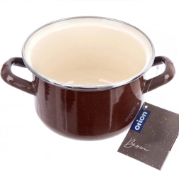 Hrniec zo série BROWN kombinuje nadčasový vzhľad s každodennou praktickosťou. Hnedá smaltovaná oceľ so strieborným nerezovým okrajom a krémovým interiérom sa hodí do moderných aj rustikálnych kuchýň. Vďaka objemu 1,4 l, priemeru 16 cm a výške 10 cm je perfektný na polievky, omáčky, kaše či menšie porcie príloh.