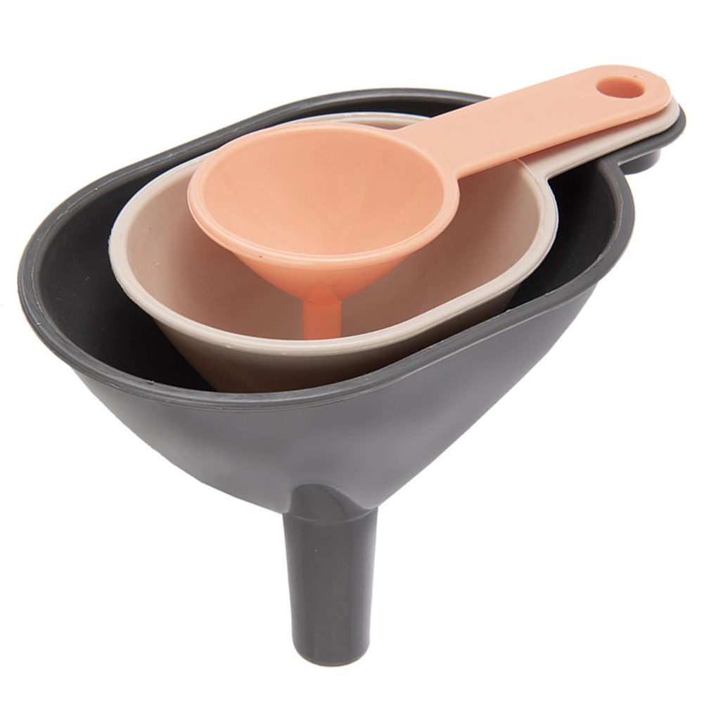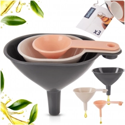 Malý, stredný a veľký lievik pokryjú prelievanie tekutín aj sypkých surovín do nádob s rôzne širokým hrdlom.