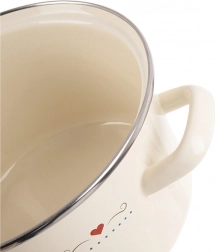 Štýlový smaltovaný hrniec TONCA s objemom 4 l a priemerom 22 cm v krémovej farbe s jemným motívom srdiečok je ideálny na každodenné varenie aj dusenie. Má pevné ergonomické úchyty, nerezový okraj a je vhodný na všetky typy sporákov vrátane indukcie aj do rúry. Pre jednoduchú údržbu ho môžete umývať v umývačke.