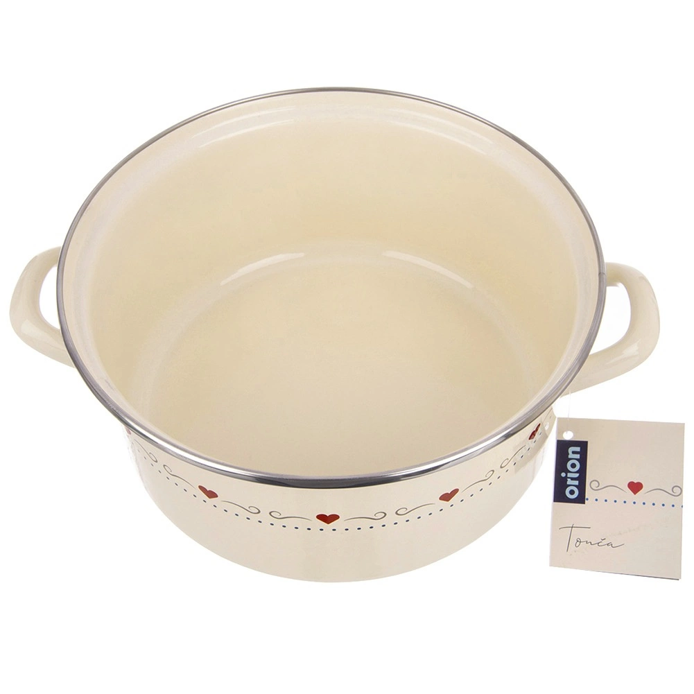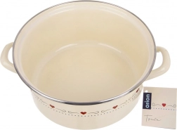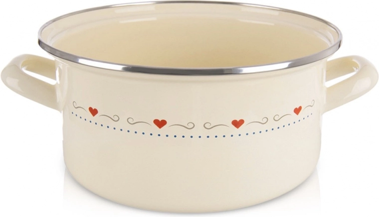 Obľúbený retro dizajn a praktickosť v jednom: smaltovaný hrniec TONCA s priemerom 24 cm a výškou 11 cm sa skvele hodí na polievky, omáčky aj dusené jedlá. Krémové prevedenie s decentnými srdiečkami ozdobí každú kuchyňu a vďaka širokému otvoru je miešanie aj servírovanie maximálne pohodlné.