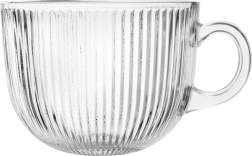 Elegantný sklenený hrnček s objemom 500 ml s pohodlným uchom a ryhovaným povrchom pre istý úchop. Vhodný na horúce aj studené nápoje, vyrobený z kvalitného skla odolného do 100 °C. Možno umývať v umývačke – ideálny na každodenné používanie doma aj v gastronómii.