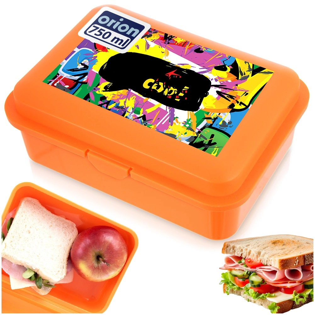Praktický desiatový box s objemom 750 ml v oranžovej farbe s nápisom Cool je ideálny na chlebíčky a desiaty na cesty, do školy aj na výlety. Ľahký a odolný box z kvalitného plastu má rozmery 18 × 13 × 7 cm, jednoduché zatváranie na klips pre uchovanie čerstvosti a ľahkú údržbu v umývačke. Vhodný aj do mikrovlnky (s otvoreným vekom do 400 W).