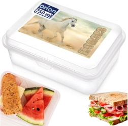 Tento ľahký a odolný desiatový box z kvalitného plastu je skvelou voľbou do školy, na výlety aj na cesty. Priehľadné prevedenie s efektným motívom koní deťom uľahčí rozpoznanie ich krabičky. Jedna priestranná komora pojme sendviče, ovocie, zeleninu aj drobné snacky.