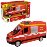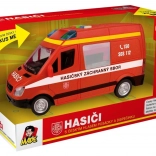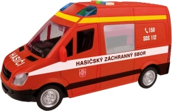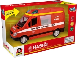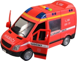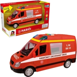 Táto hasičská dodávka poteší všetkých malých záchranárov realistickým prevedením a funkciami. Po stlačení tlačidiel budete počuť slovenský hlas dispečingu a posádky a uvidíte blikajúci maják. Vďaka zotrvačníkovému pohonu auto jednoducho postrčíte a rozbehne sa dopredu.