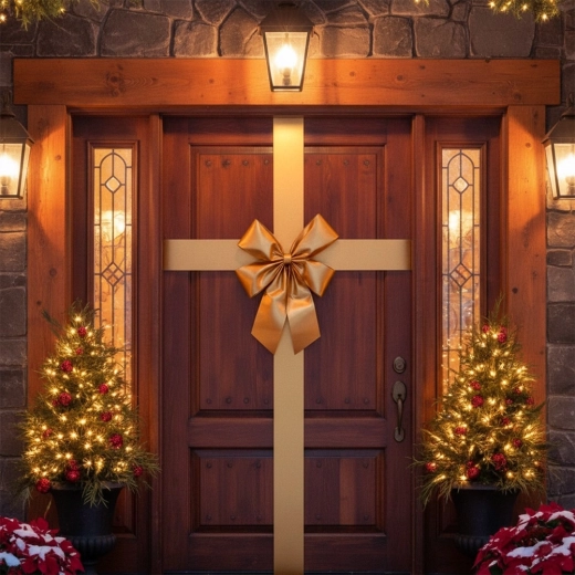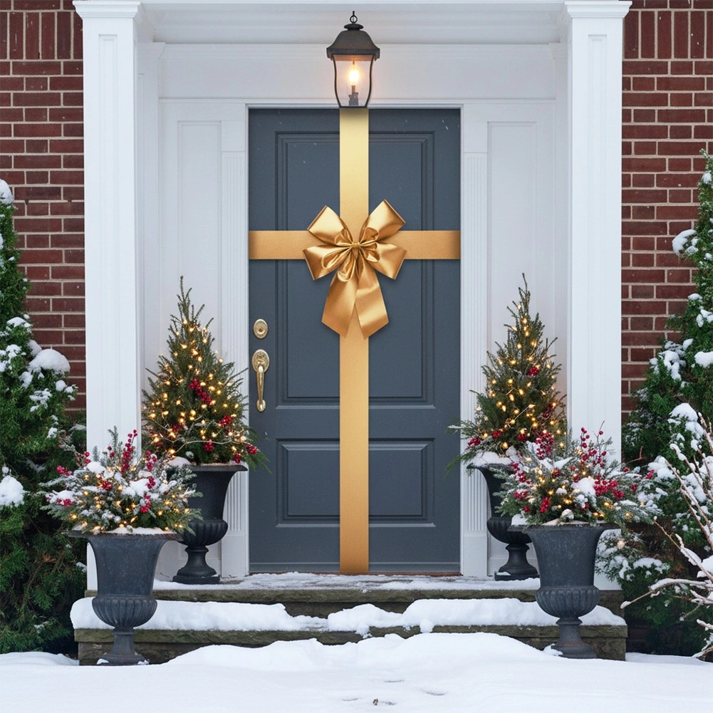 Súčasťou je extra dlhá stuha s dĺžkou 4,3 m, ktorou ľahko omotáte dvere vertikálne aj horizontálne a vytvoríte vzhľad „zabaleného darčeka“. Materiál je odolný a znovupoužiteľný, drží tvar a nekrčí sa, takže dekoráciu využijete počas mnohých sezón.