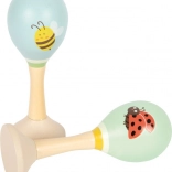 Doprajte deťom radosť z prvého muzicírovania. Drevené rumbagule Small Foot s motívmi včielky a lienky sa pohodlne držia, príjemne hrkajú a vďaka hladkému povrchu sú bezpečné aj pre najmenších. Pastelové farby a milý dizajn prirodzene lákajú ku hre a objavovaniu rytmu.