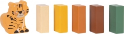 - Farebné drevené tehličky, rám so základňou, 2 drevené paličky, figúrka tigríka