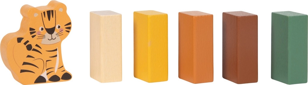 Farebné tehličky, stabilný rám, dve paličky a figúrka tigra – všetko zo 100% FSC® dreva s hladkým povrchom.