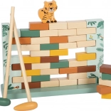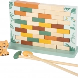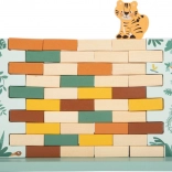 Zábavná drevená hra pre celú rodinu, v ktorej opatrne vytláčate farebné tehličky zo steny a snažíte sa udržať stavbu stabilnú. Súčasťou je figúrka tigríka, dve paličky a pevná základňa. Hra rozvíja jemnú motoriku, koordináciu oko–ruka, trpezlivosť a strategické myslenie. Vyrobené zo 100% FSC® dreva s hladkým povrchom a tlmenými farbami, ktoré deti zaujmú.