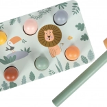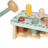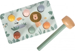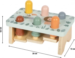 Objavte hravú zatĺkaciu lavičku v motíve safari od small foot zo 100% FSC certifikovaného dreva. Deti pomocou kladivka zatĺkajú kolíčky a zažijú prekvapivý moment: keď jeden kolík zmizne, druhý na opačnej strane vyskočí! Hračka s rozkošnými zvieracími motívmi, hladkými zaoblenými hranami a pevnou drevenou konštrukciou podporuje jemnú motoriku, koordináciu oko–ruka a pochopenie príčiny a následku.