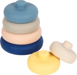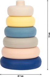 Hračka je odolná, ohybná a ľahko umývateľná – hodí sa do vody, na piesok aj na každodenné hranie v detskej izbe. Jemné pastelové farby rozvíjajú zmyslové vnímanie a motivujú deti k triedeniu podľa veľkosti.