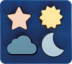 Silikónové puzzle small foot je navrhnuté pre malé ručičky a zvedavé hlavičky. Štyri pastelové tvary – slnko, mesiac, hviezda a obláčik – deti ľahko uchopia a vložia do podložky z rôznych strán, čo podporuje kreativitu a prirodzené učenie tvarov a farieb. Materiál z potravinárskeho silikónu bez BPA je jemný na dotyk, bez zápachu a úplne bezpečný aj pri kontakte s ústami.