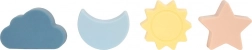 Štyri dieliky v tvare slnka, mesiaca, hviezdy a obláčika podporujú rozvoj jemnej motoriky, koordinácie a zmyslového vnímania.