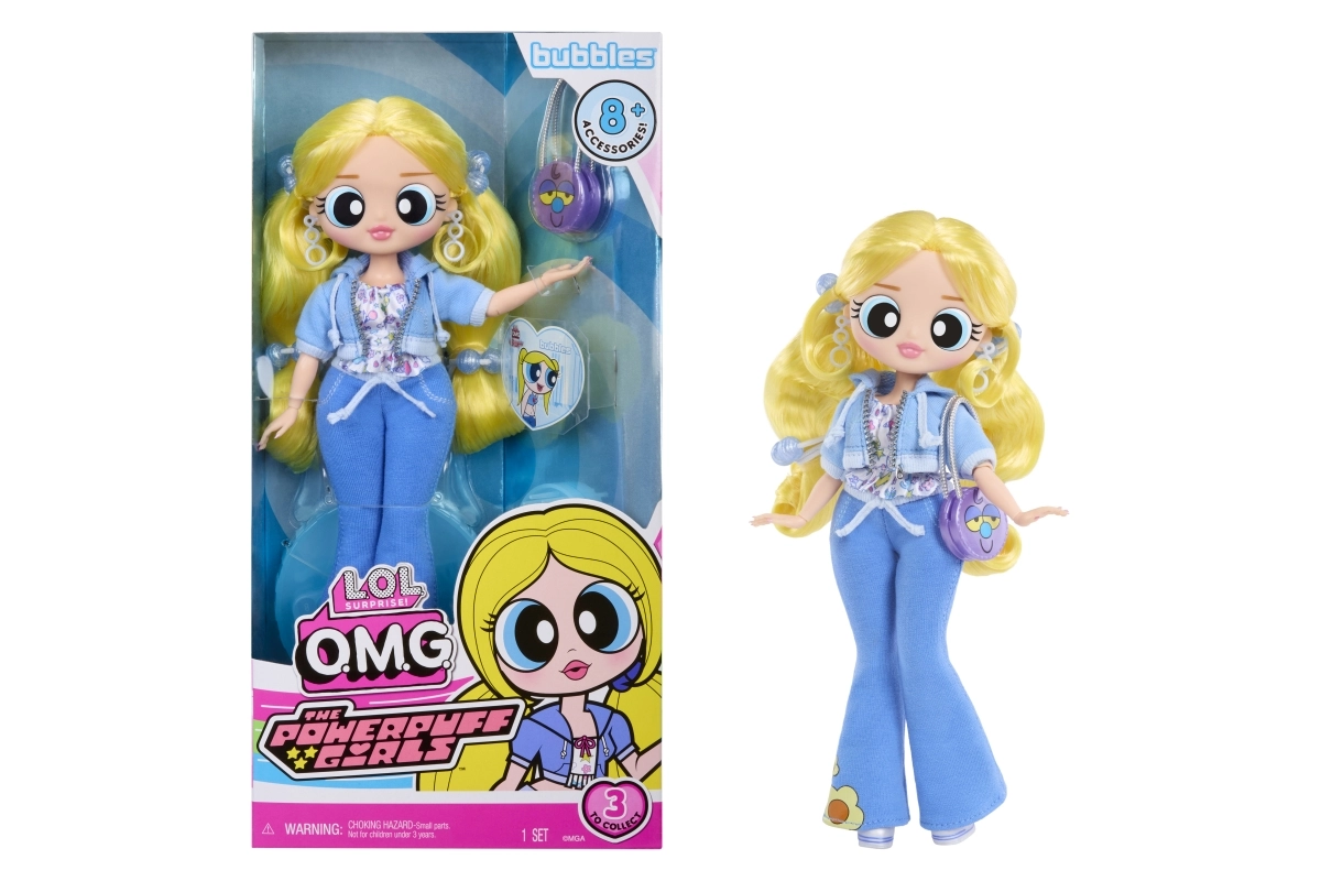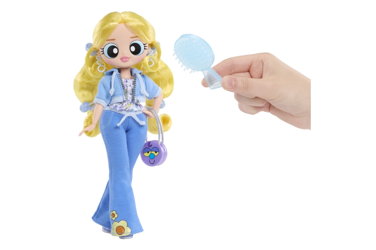 Bubbles prichádza v modrom outfite s kvetinovými prvkami a ikonickou kabelkou – ideálne na módne príbehy a zbieranie.