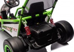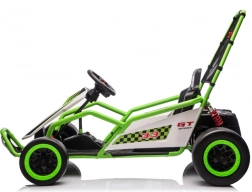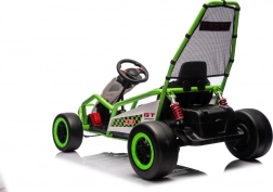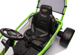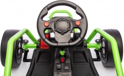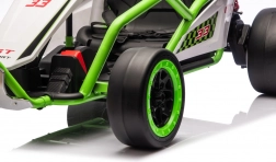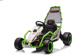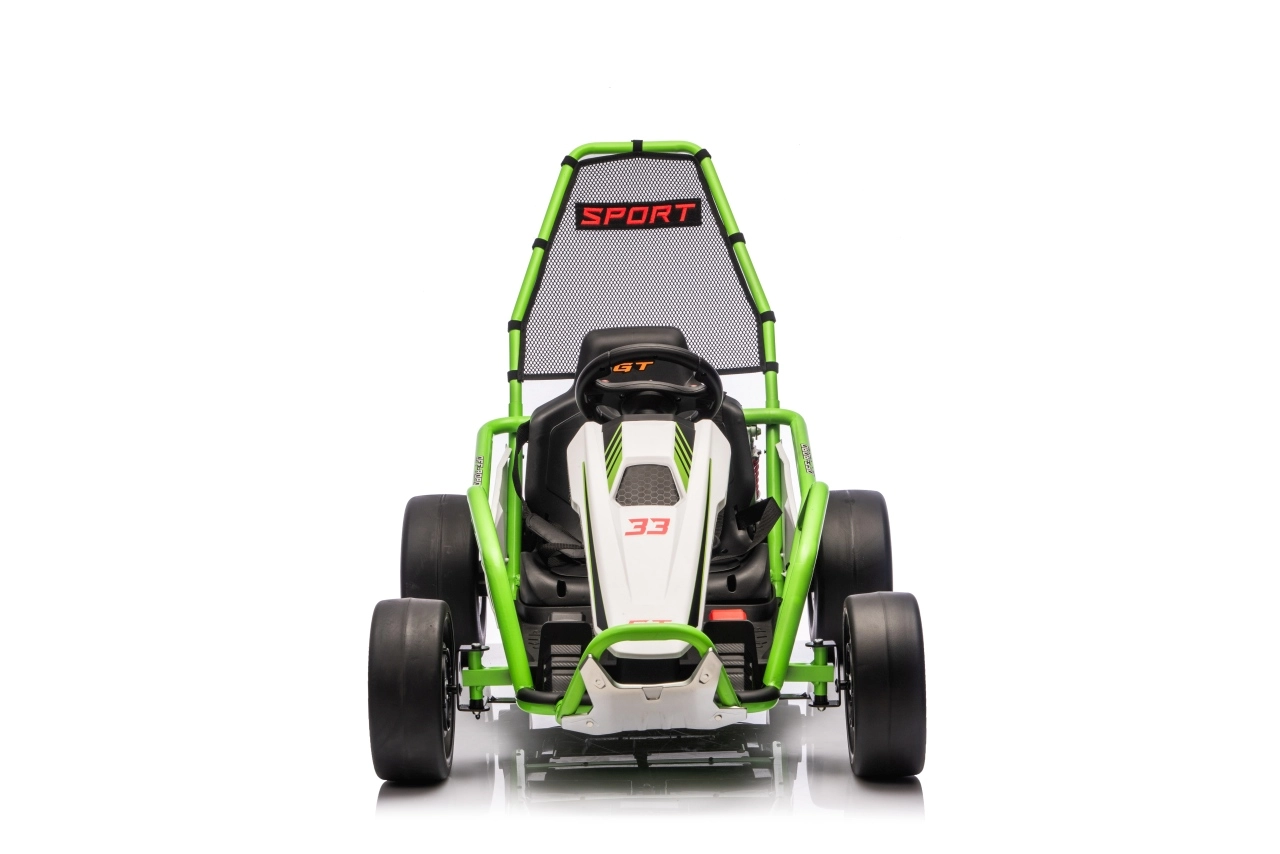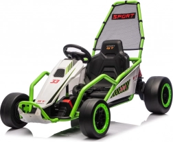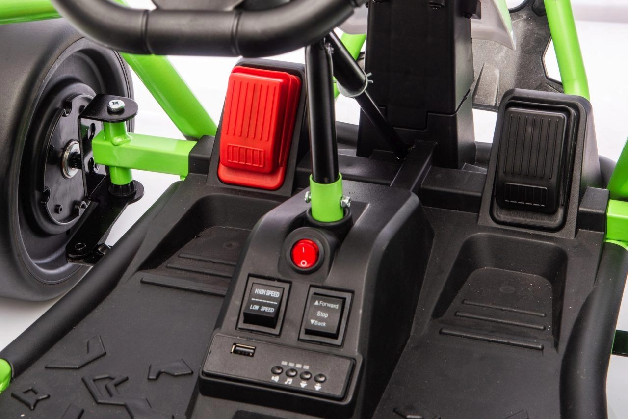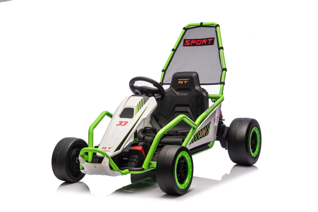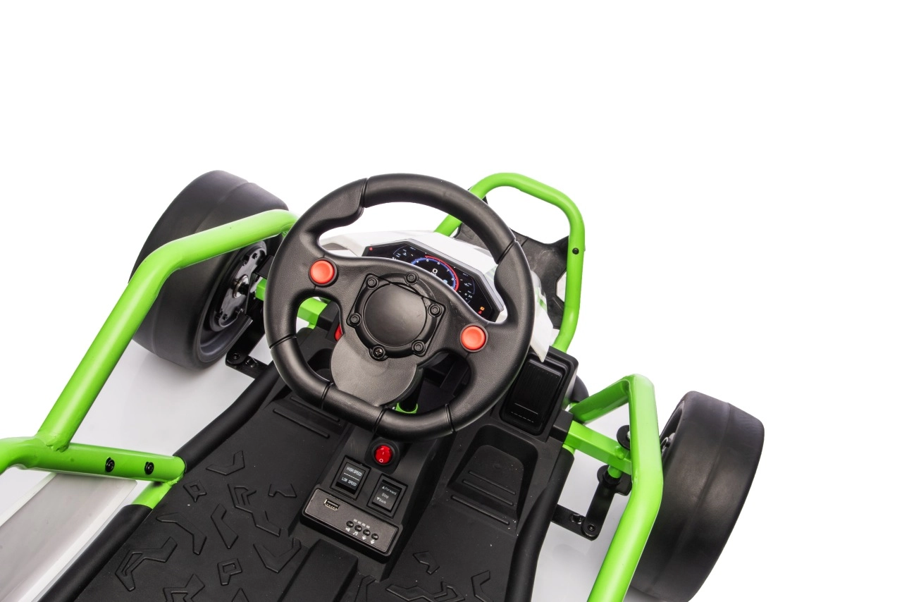 Zábavná detská motokára s elektrickým pohonom 24 V a dvoma motormi 2×150 W prináša adrenalínovú jazdu s funkciou driftu. Predné EVA kolesá pre tichú a pohodlnú jazdu, zadné plastové kolesá pre kontrolované šmyky, nastaviteľné zadné tlmiče, dve rýchlosti a multimediálny panel s MP3/USB/Bluetooth. Robustný rám, športové sedadlo s bezpečnostnými pásmi a nosnosť 50 kg zaistia bezpečnú zábavu doma aj vonku.
